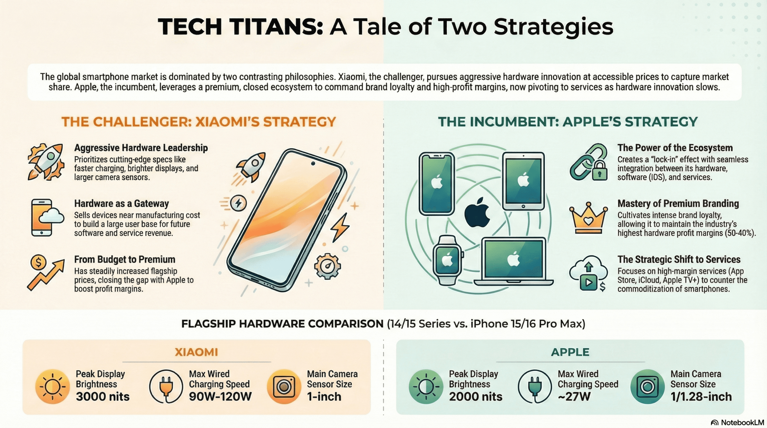 • Industry leaders like Apple possess the R&D and capital to deliver technology lightyears ahead of competitors, but deliberately choose to withhold innovation, as providing the best hardware is not their business model.