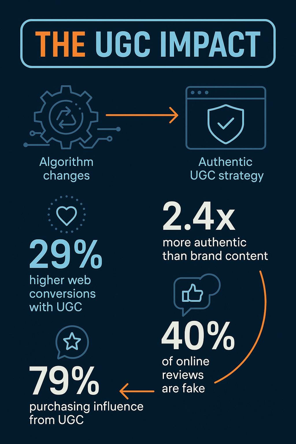 User-generated content has emerged as the most effective counter to algorithm limitations because platforms actively promote content that drives meaningful engagement. UGC videos receive 10 times more views on YouTube than brand-created content, while products featuring UGC photos experience a 69% higher conversion rate.